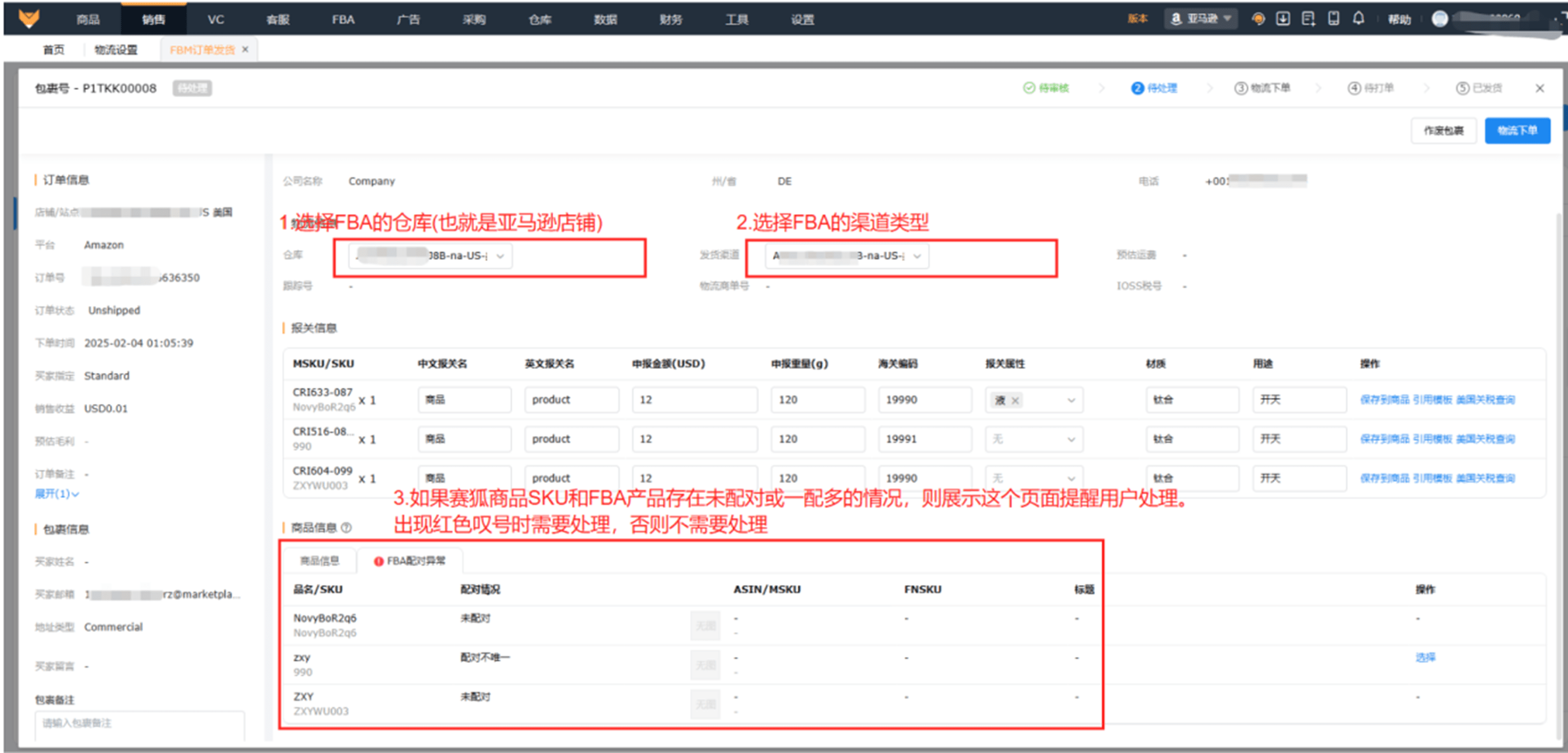 【订单详情,选择FBA物流渠道—物流下单】