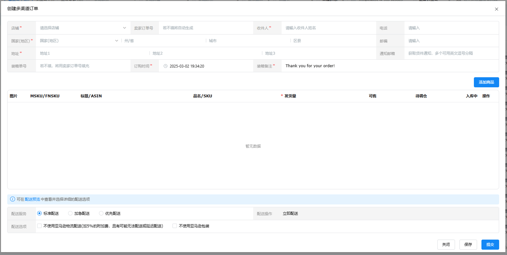 3. 手动创建多渠道配送MCF订单
