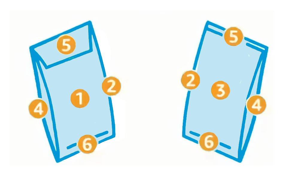 跌落测试和评估完成后,记录测试后的图像。硬质包装需要五张照片,软质包装需要六张照片,如下所示: