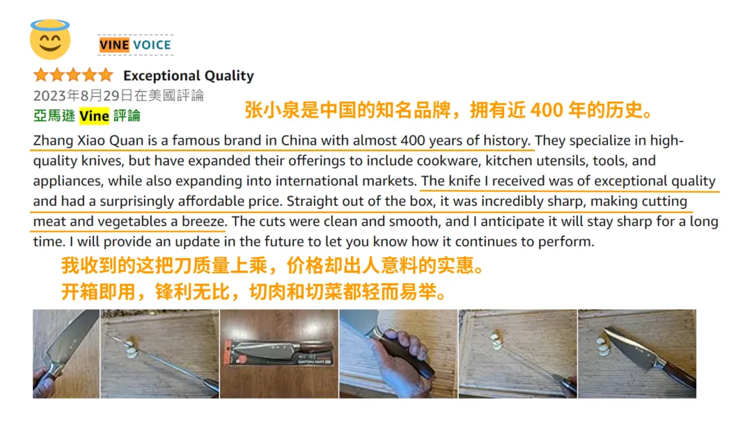 图 丨 张小泉亚马逊店铺收到的Vine评论