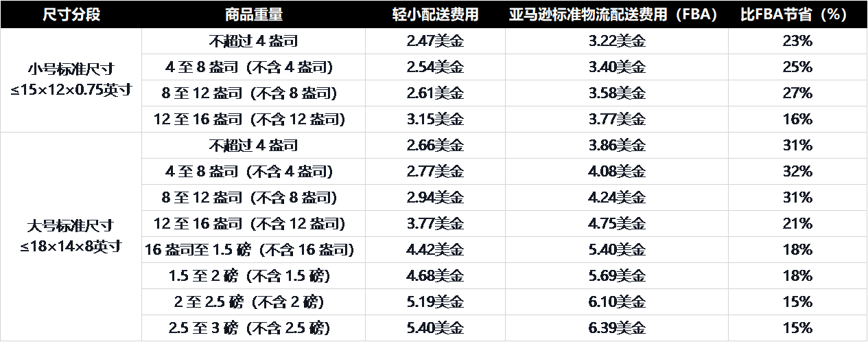 费用比较:“亚马逊物流轻小商品计划” VS“标准亚马逊物流”