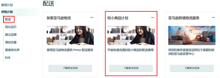 (1) 对于亚马逊物流(FBA)卖家可点击【为您降低配送费用】为符合要求的商品注册“轻小商品计划”;