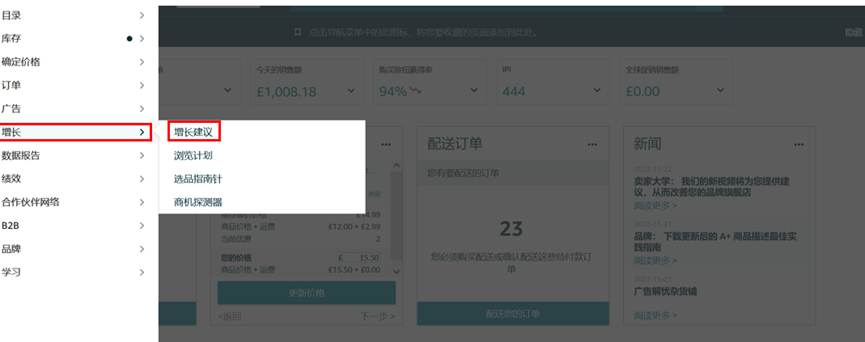 • 方法2:卖家也可在卖家后台左侧菜单中点击【增长】下的【增长建议】中识别出“轻小商品计划”的商品进行注册;