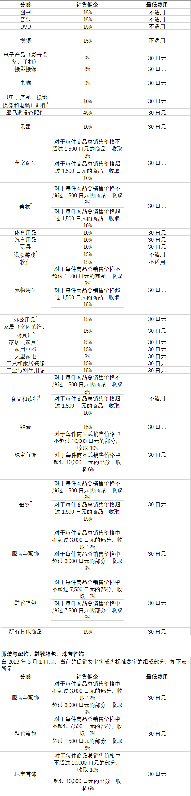 亚马逊日本站开店费用介绍,含月租、佣金等。