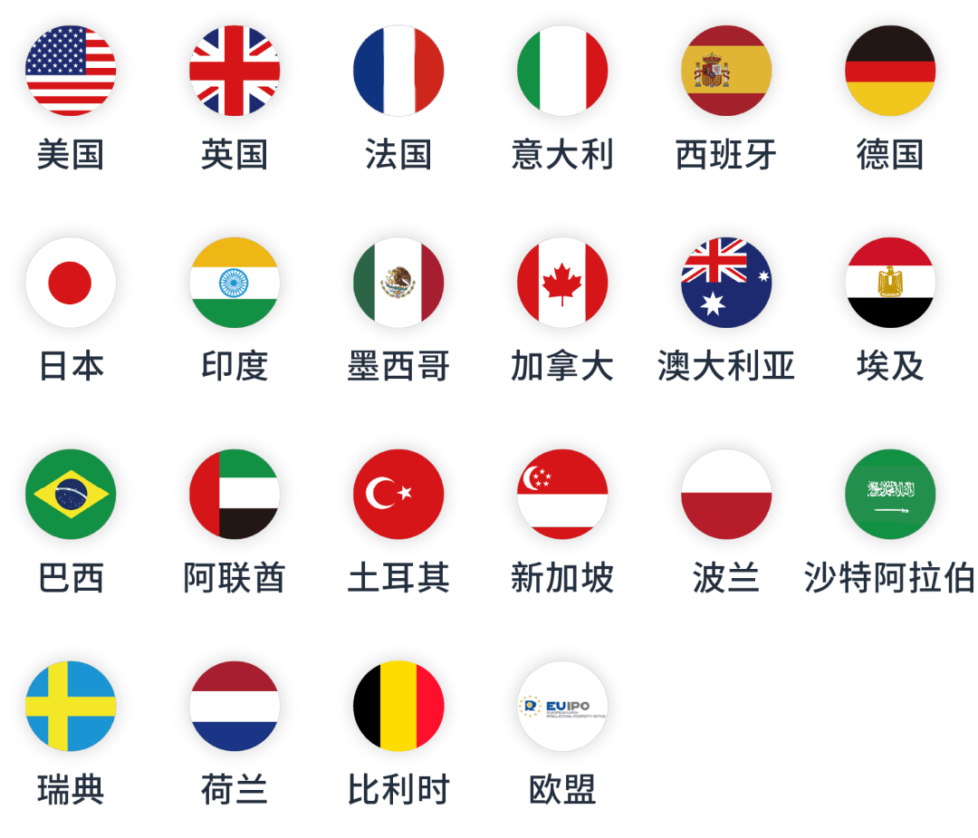 目前,亚马逊品牌注册接受以下国家/地区政府商标局签发的商标 ,包括: