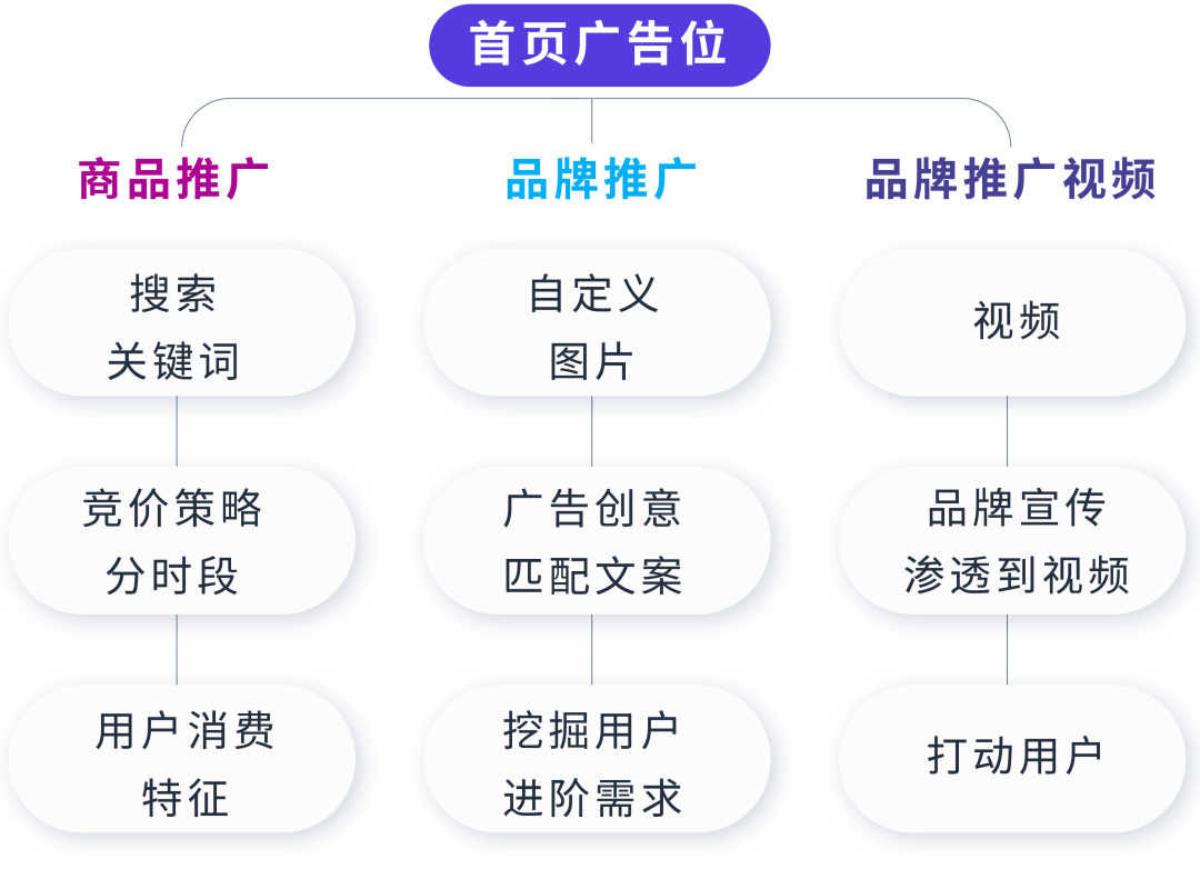 例如:通过分析商品推广广告中消费者的消费特征(如下单时间段)来提高广告对消费者的吸引力。通过品牌类广告投放挖掘消费者的进阶需求,从而强化消费者对广告的印象。最后利用品牌推广视频进一步打动消费者。