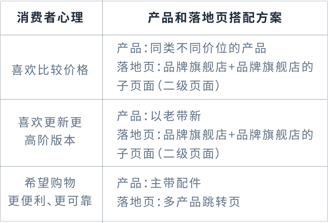 3.根据不同消费者心理进行品牌推广和落地页搭配