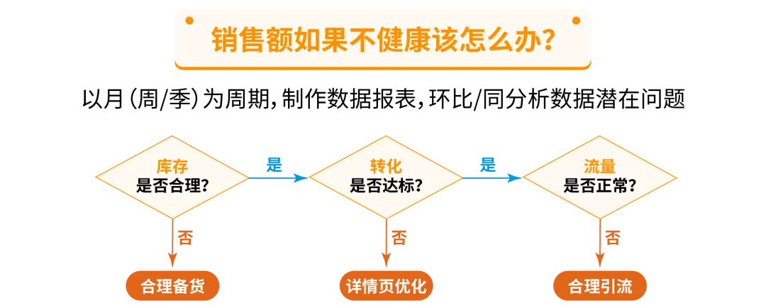 卖家在明确关键数据后,需系统地收集并分析相关数据,以此发现潜在问题。下面以销售额分析为例,看看官方专属顾问如何通过3步协助卖家高效分析数据,进而评估店铺表现。