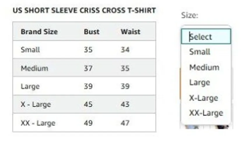 ⭐ 确保尺码表中的尺码与下拉菜单中的尺码完全匹配