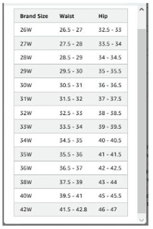 ● 关于二维尺码如裤子(如W/X/L)