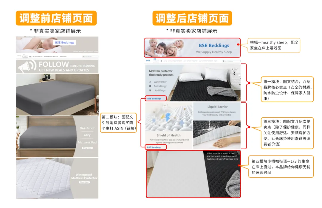 ● 此前的头图只放了使用图和品牌名称,没有代入感,在经过优化后,他采用了一张全家坐在床上嬉戏的照片,同时配上“healthy sleep”的标语,让消费者在第一眼就能够迅速领会到健康睡眠的理念;