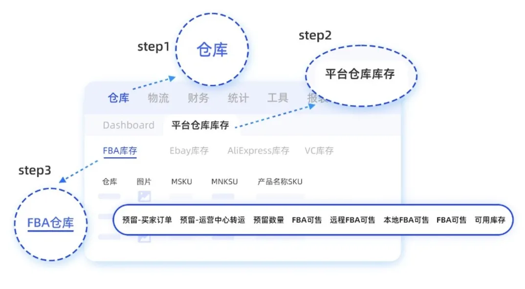 ⚠️ 小贴士:有些ERP将亚马逊FC的库存习惯称为“FBA库存”。以下图为例,该卖家选择了查看“FBA库存”,这部分库存可以通过FBA为亚马逊网点的订单配送,也可以通过MCF为其他销售渠道的订单配送。