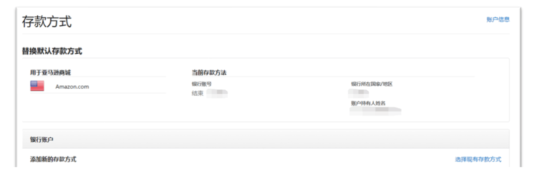 ➡️已有店铺卖家:在“替换存款方式”界面,点击“添加新的存款方式”,将“银行所在地”选择“中国”。