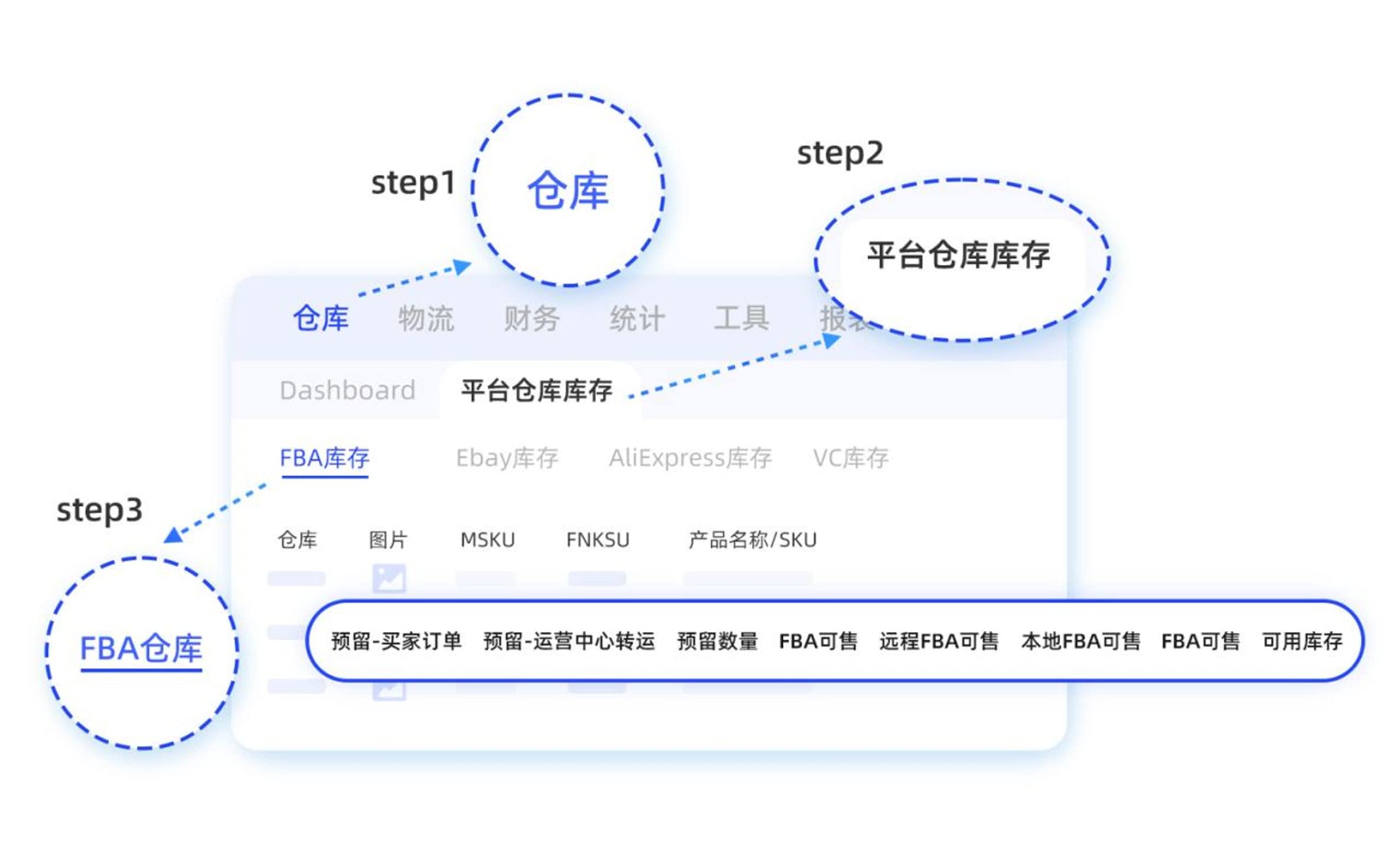 5. 在【仓库-平台仓库存-FBA库存】中确认需要转FBA发货的sku库存数据可用与正常。