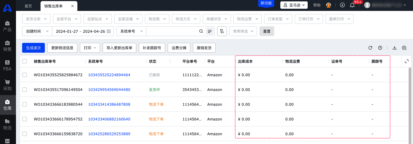 支持自动获取并查看订单的出库成本、物流运费、跟踪号,统一管理物流成本。