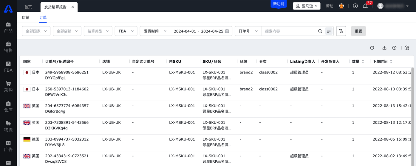 所有平台订单在领星ERP系统内可统一查看与管理,无需登录多个平台账号。