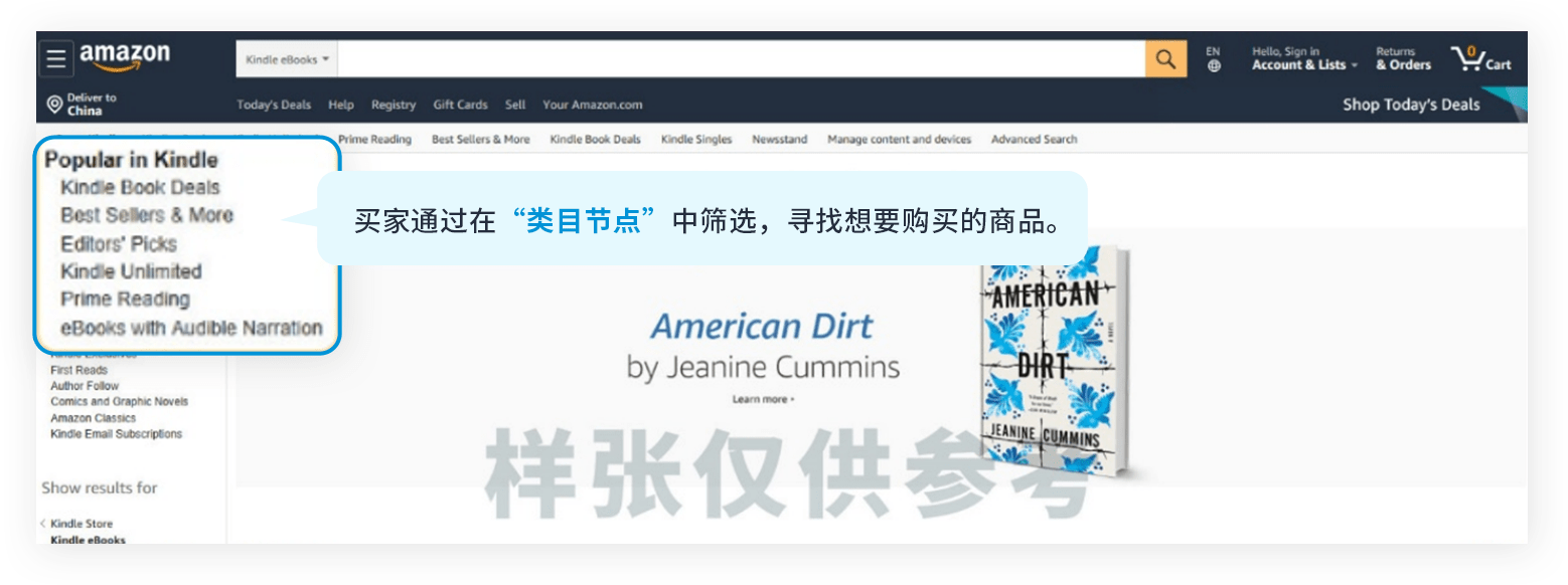 情景设定:美国买家 A 打算在亚马逊购买 Kindle,他在亚马逊美国站搜索关键词的历程分以下几步。