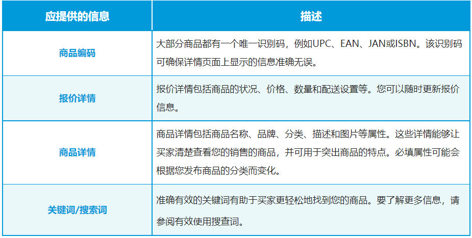 3/创建新商品信息:如果你无法使用“添加新商品”找到你的商品,则可以在亚马逊上创建新商品信息。在亚马逊上创建新的商品信息之前,请务必提供以下信息: