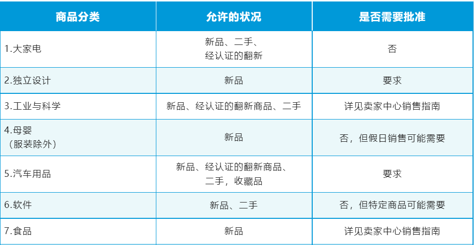 ● 卖家必须得到批准才能销售受限商品或分类。