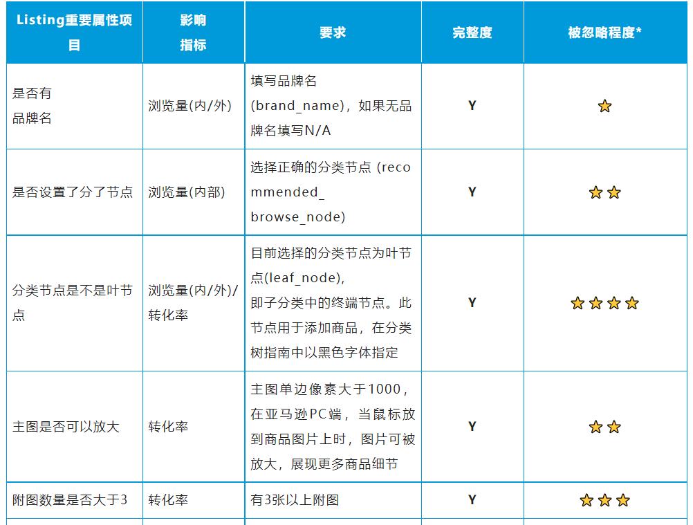 2 / Listing重要属性自查表