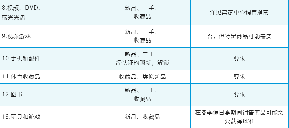 常见商品分类及质量审批要求如下(以美国站点为例)
