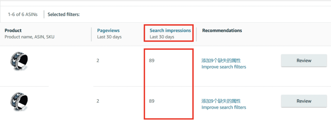 方法一:点击Search Impression,选择降序排列,可优先补全高流量的产品属性值,以便进一步提高转化。