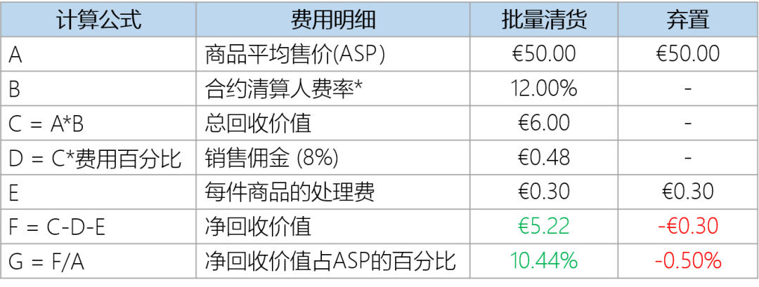 ▲ 如果使用批量清货,每件商品可以回收5.22欧,回收金额占商品平均售价的10.44% 。