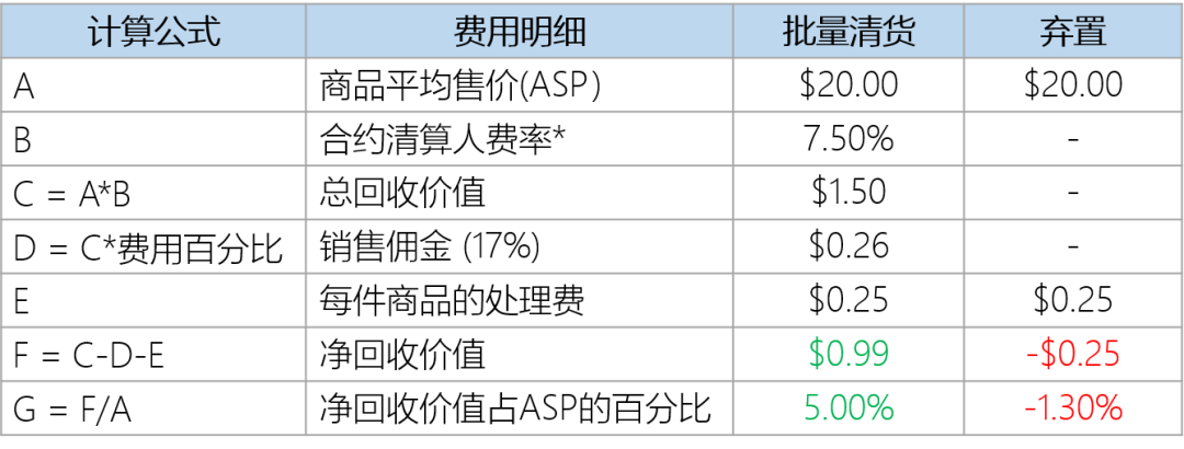 ▲ 如果使用批量清货,每件商品可以回收0.99美金,回收金额占商品平均售价的如5%。