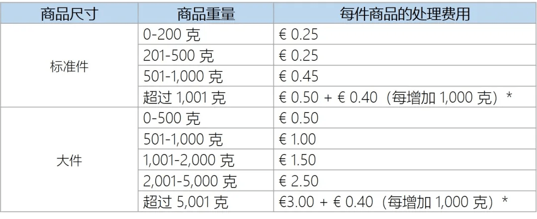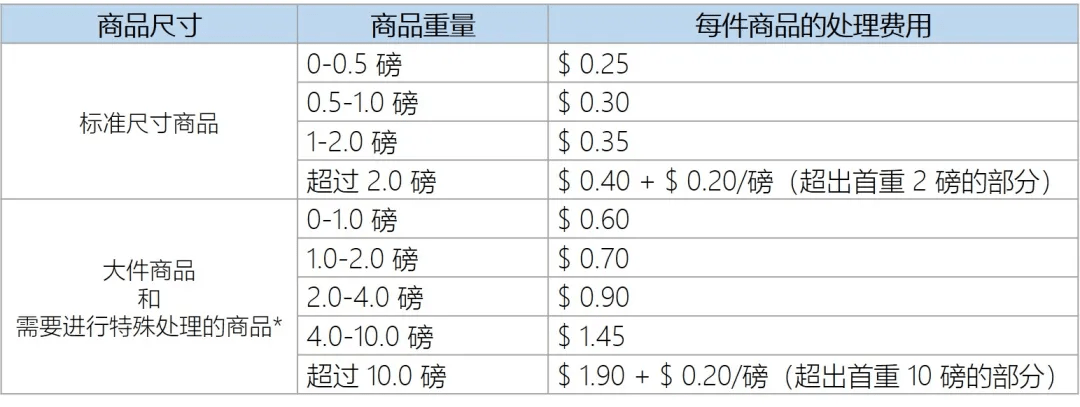 ▲ 商品处理费:按件计算,每件商品的具体费用取决于商品尺寸和重量