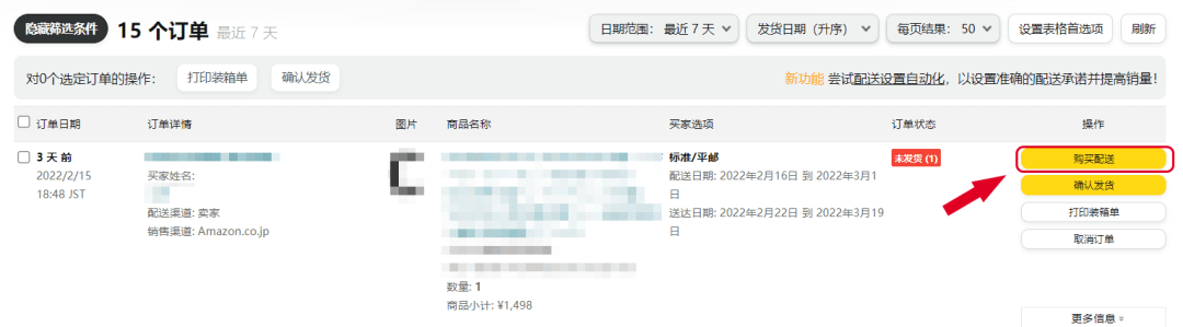 “购买配送”服务(Buy Shipping)会自动筛选可以按时交付并满足亚马逊发货要求(如配送时效、追踪和清关)的配送选项(承运商及配送方式),确保卖家的自配送订单符合亚马逊的配送政策。