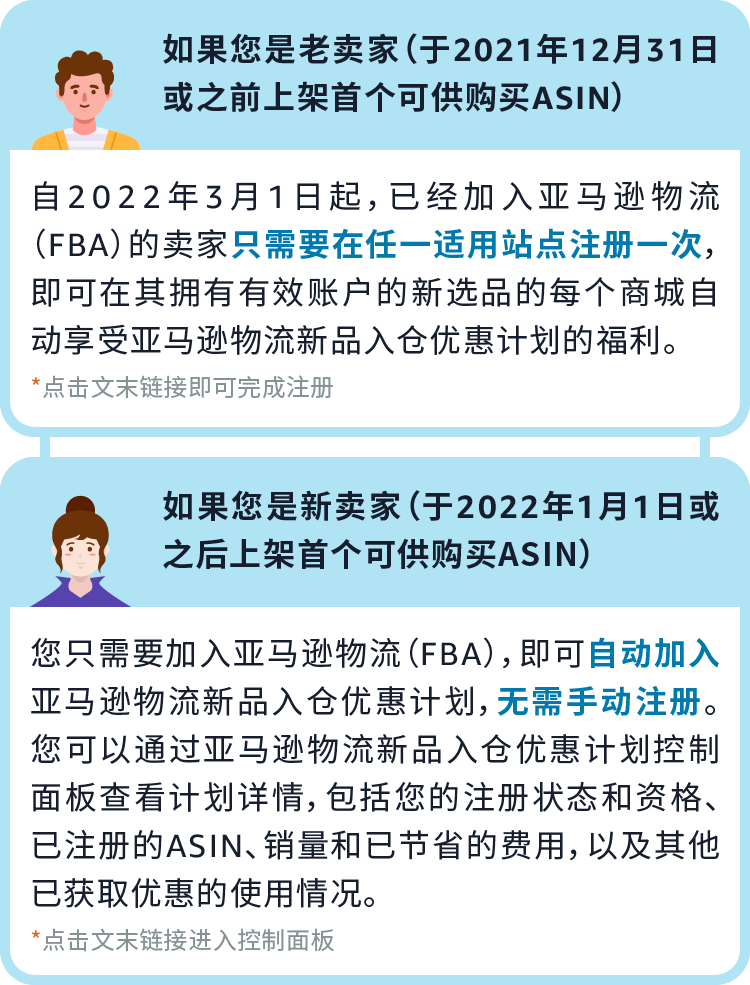 今天!继续送福利!不管您是新卖家还是老卖家,如果您准备上新品赶紧看过来!自2022年3月1日(太平洋时间)起,“亚马逊物流新品入仓优惠计划” 福利全面升级!符合条件的FBA新ASIN将获得5%销售额返还、免费批量清货、免仓储费、免移除费、免退货处理费...