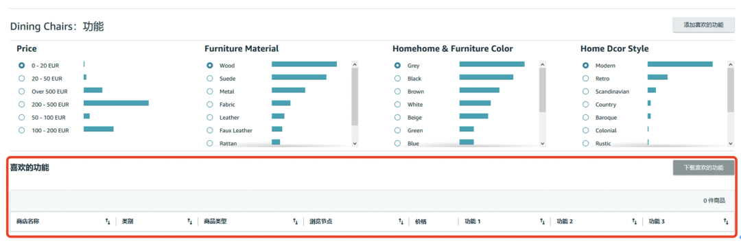 “喜欢的功能”对我来说也非常有价值,里面有买家们偏爱的产品功能,用于我们做产品定性是有很大帮助的。