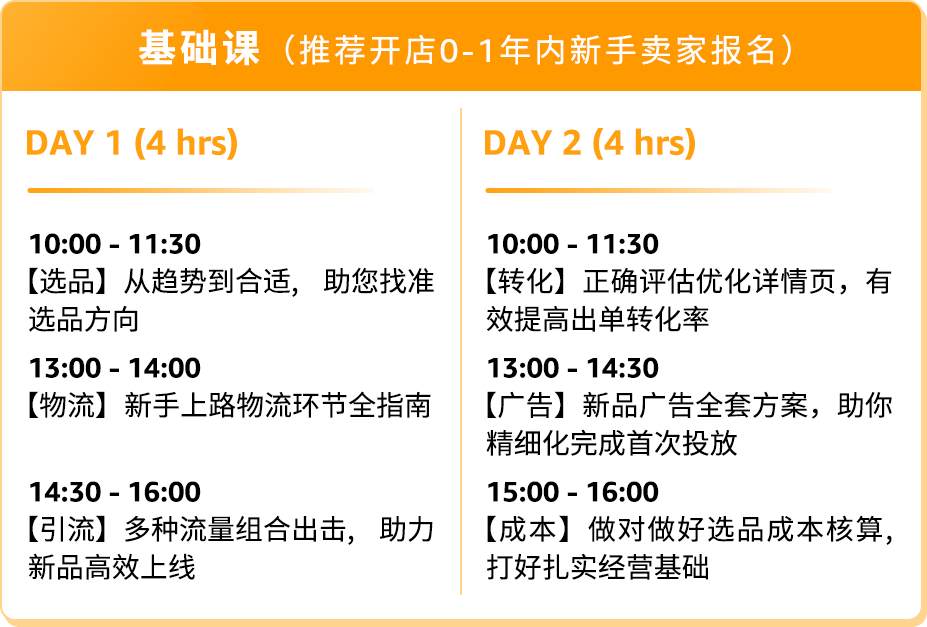 建议您报名官方讲堂特训营699基础课,覆盖新手卖家运营实操难点,保姆级教学!五大课题:新手选品策略、基础物流、引流与转化、广告入门及成本核算,手把手教您快速上手店铺运营,助力新手卖家从0到1,快速启动!
