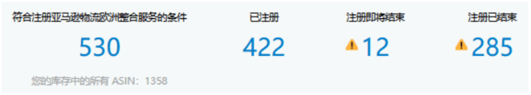 ③ 监视器显示卖家使用亚马逊物流欧洲整合服务的ASIN总体情况;