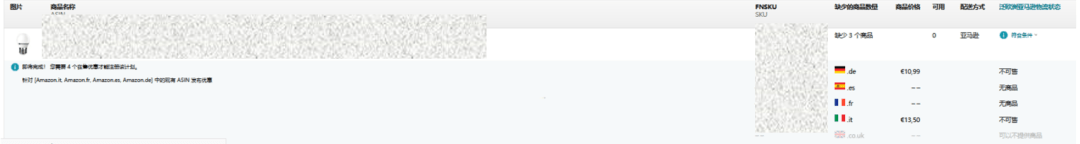 ✔️ Listing资格要求:至少有一个ASIN需要满足在亚马逊德国、法国、意大利和西班牙站点都有在售商品,并且使用相同的亚马逊物流条形码FNSKU。