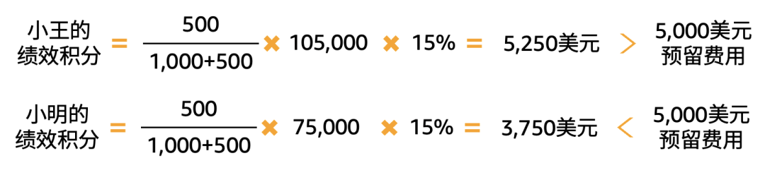 小王的绩效积分可完全覆盖设置的预留费用,因此无需为这500立方英尺的额外仓储空间支付任何费用;
