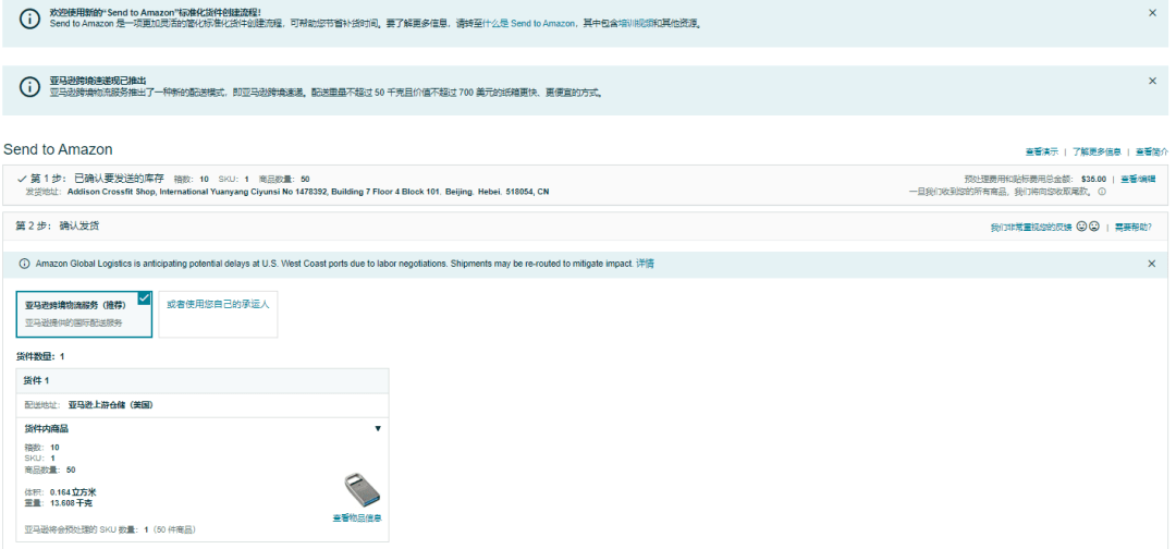③亚马逊自动创建从AWD仓库到FBA仓库进货,这些货物由亚马逊物流负责运输