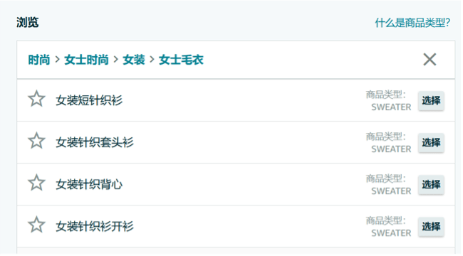 ①'product type' = 从列表中选择相应的商品类目