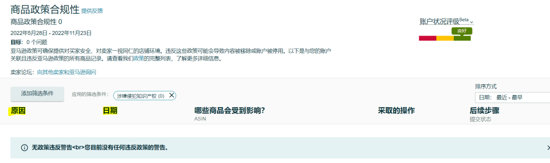 ‼重要提醒:当您的账户状况页面显示有涉嫌侵犯知识产权的违规时,请勿在成功处理违规之前删除该ASIN。