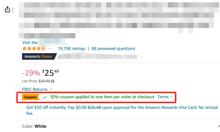 亚马逊优惠券能够为单个商品或一组商品创建折扣,无论在商品详情页还是搜索结果页都有明显的标记显示,展示节省金额(或百分比)。其展示效果在亚马逊商城显示如下图: