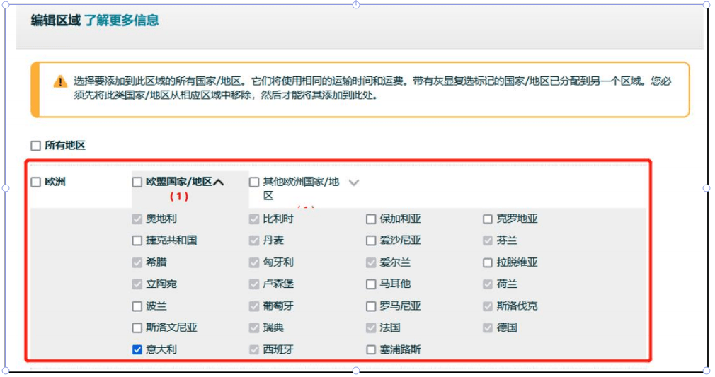 为了实现销售全覆盖,强烈建议您在欧洲6国站点为热门出口国家添加物流信息。