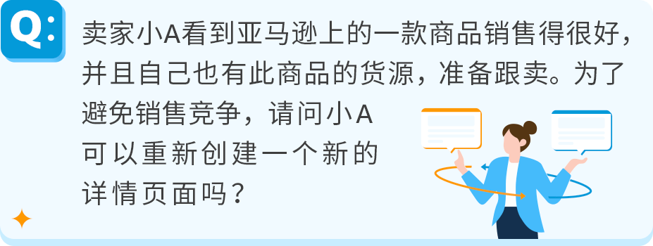 不可以!为已有详情页面的商品创建重复页面可能会导致卖家的ASIN创建或销售权限被暂停或永久撤销。