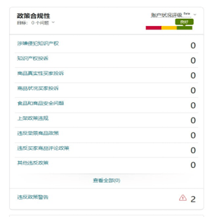 商品详情页面违规通常被标记后会显示在“政策合规性”下的“违反政策警告”里。