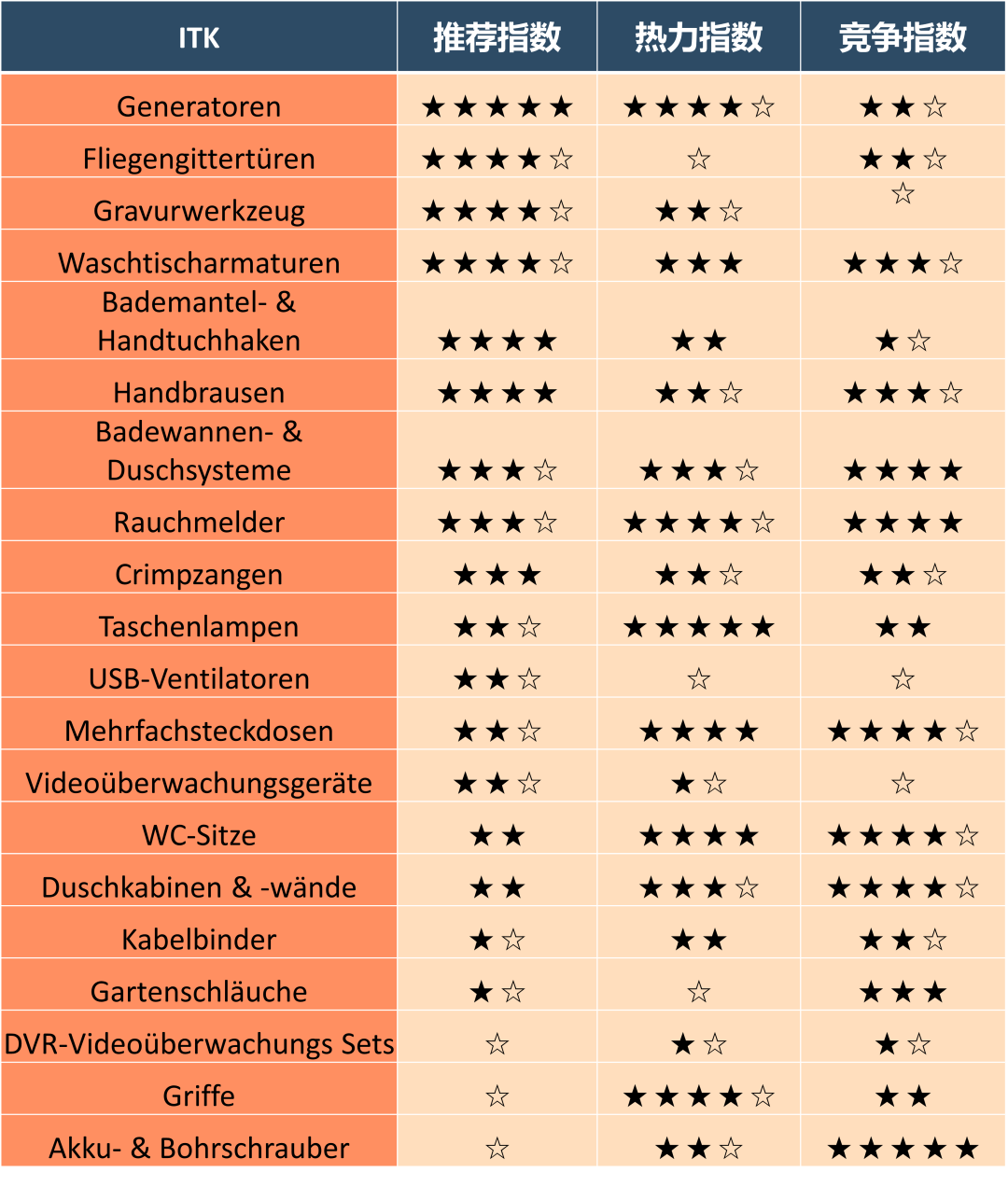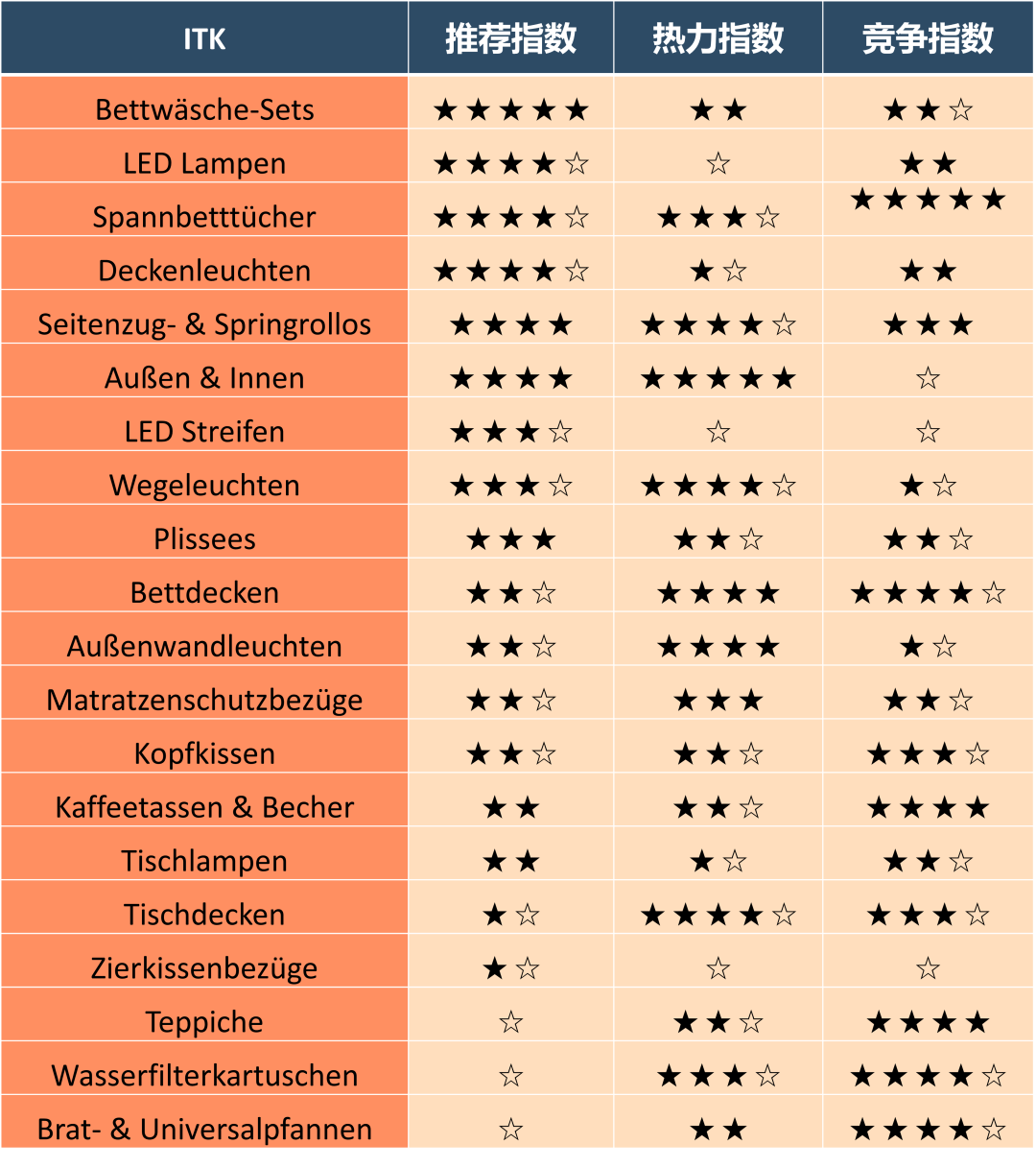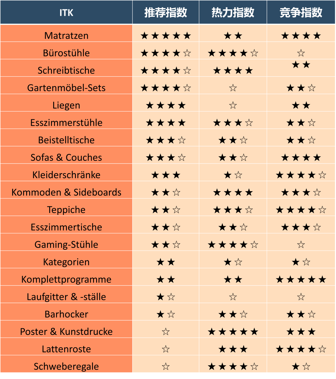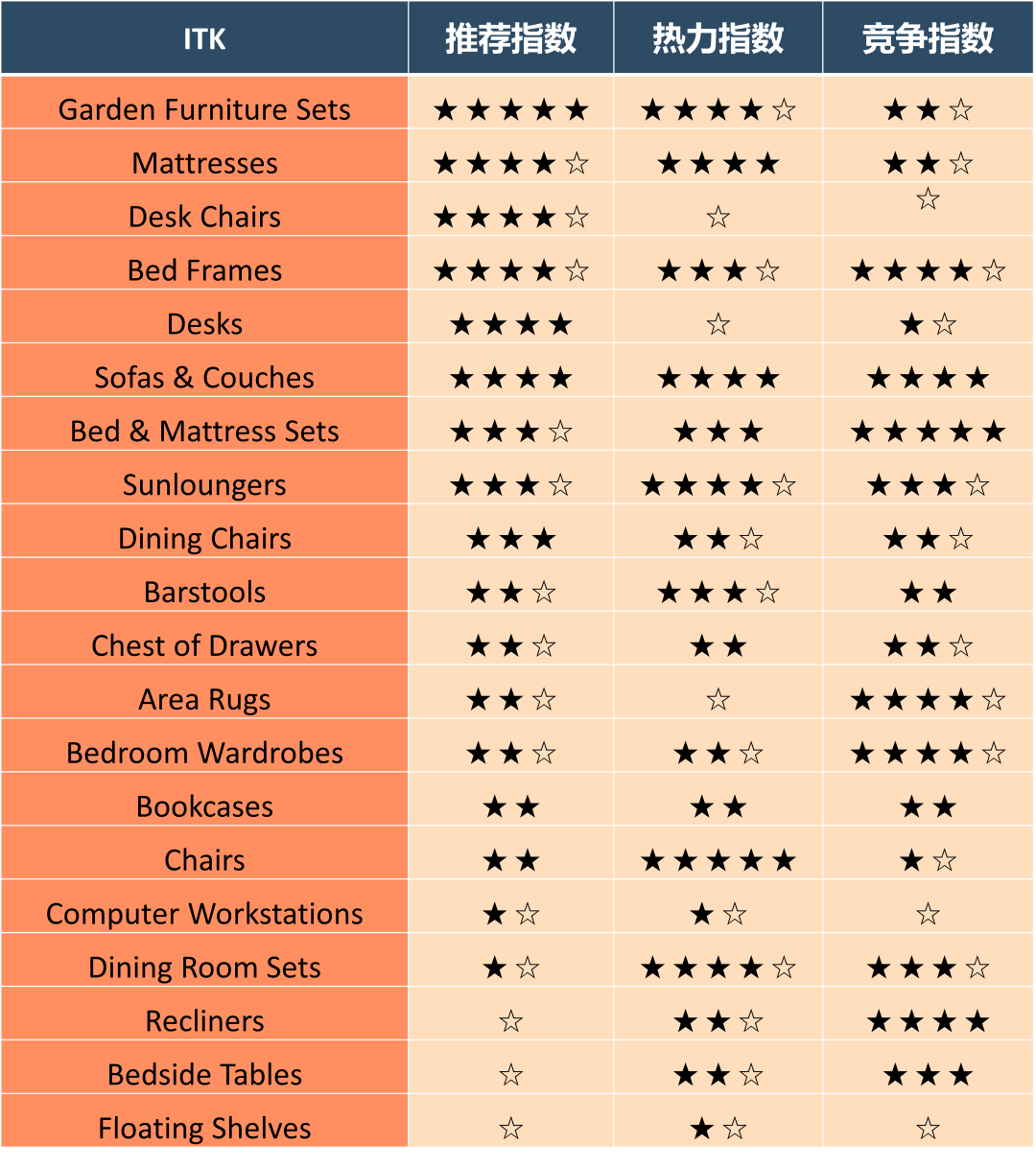 ● 竞争指数:考虑了中国卖家的渗透率情况,星级越高竞争程度越低