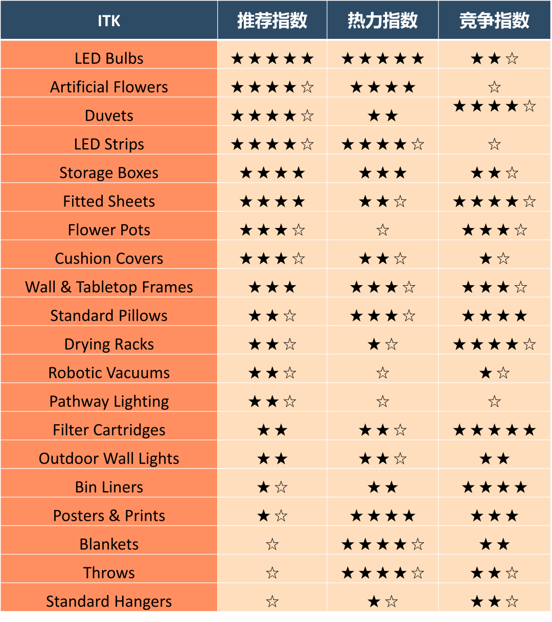 ● 热力指数:考虑了过去特定时间段的销售增长幅度,星级越高表示相对得增速越快