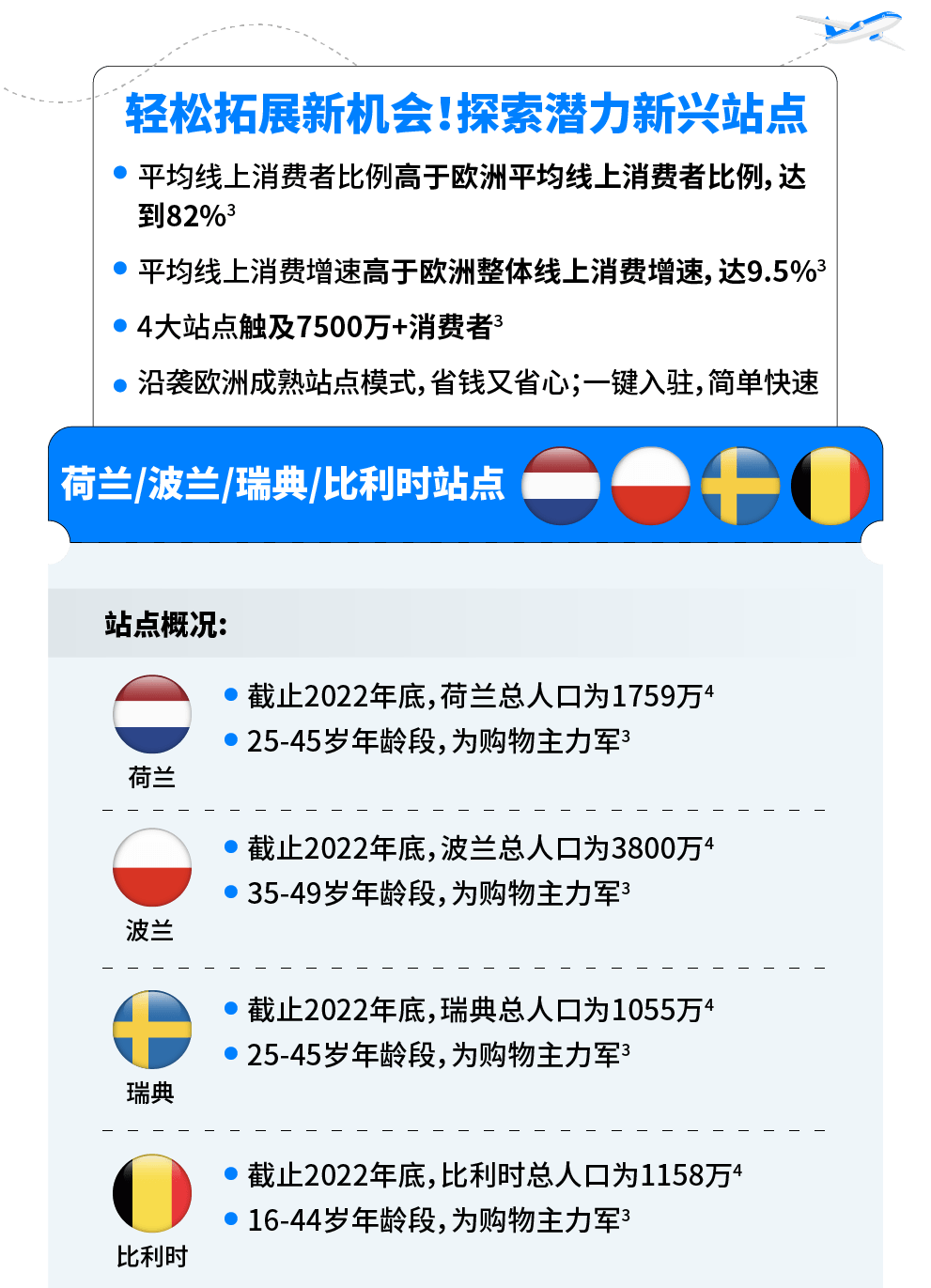 ● 除欧洲现有9大站点外,通过【欧洲出口计划】可拓展至暂无亚马逊站点的30+欧洲国家/地区