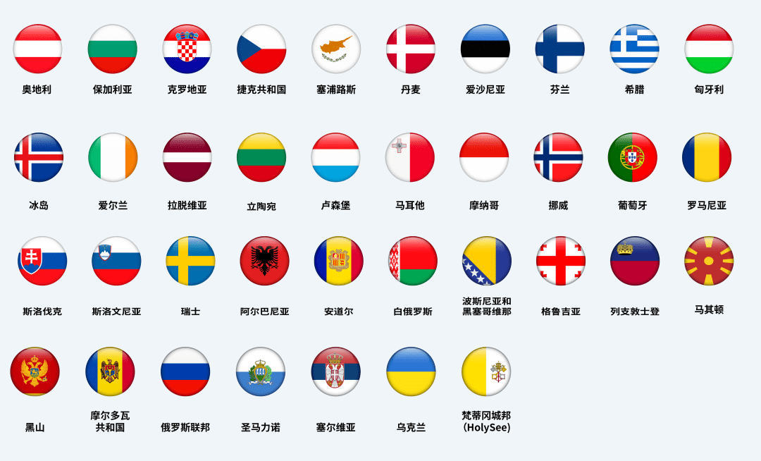 欧洲现有的9大站点除了可以进行本地销售外,卖家还可以通过开启其中6个已具有出口功能的欧洲站(英、法、德、意、西、荷)将商品跨境卖到其他暂无亚马逊站点的30+个欧洲国家和地区!如奥地利、瑞士、丹麦、匈牙利、葡萄牙、爱尔兰、捷克、希腊,还包括: