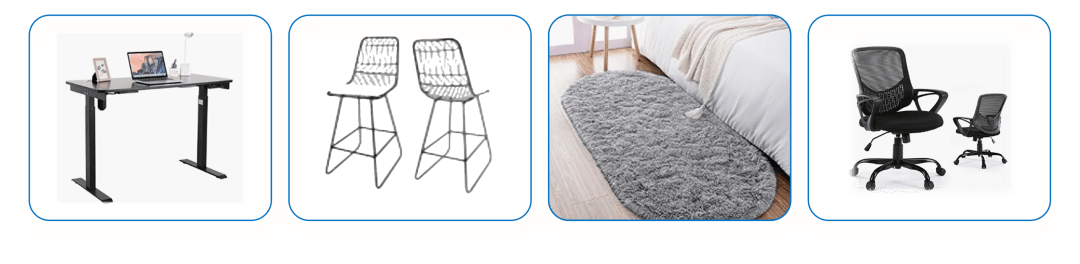 ● 热销产品举例:家庭办公室桌椅、酒吧凳、浮动货架、茶几、咖啡桌、床架、地毯