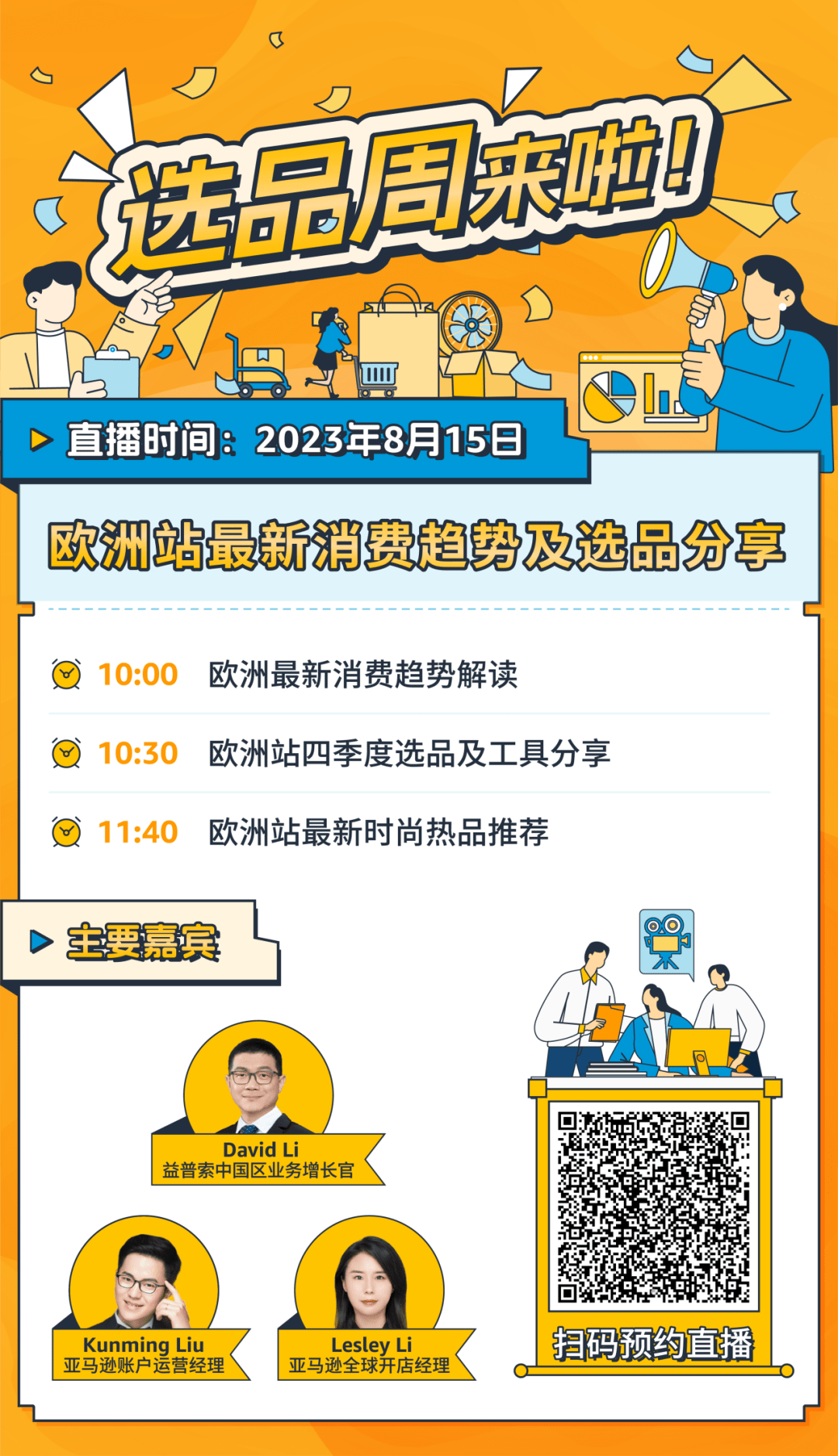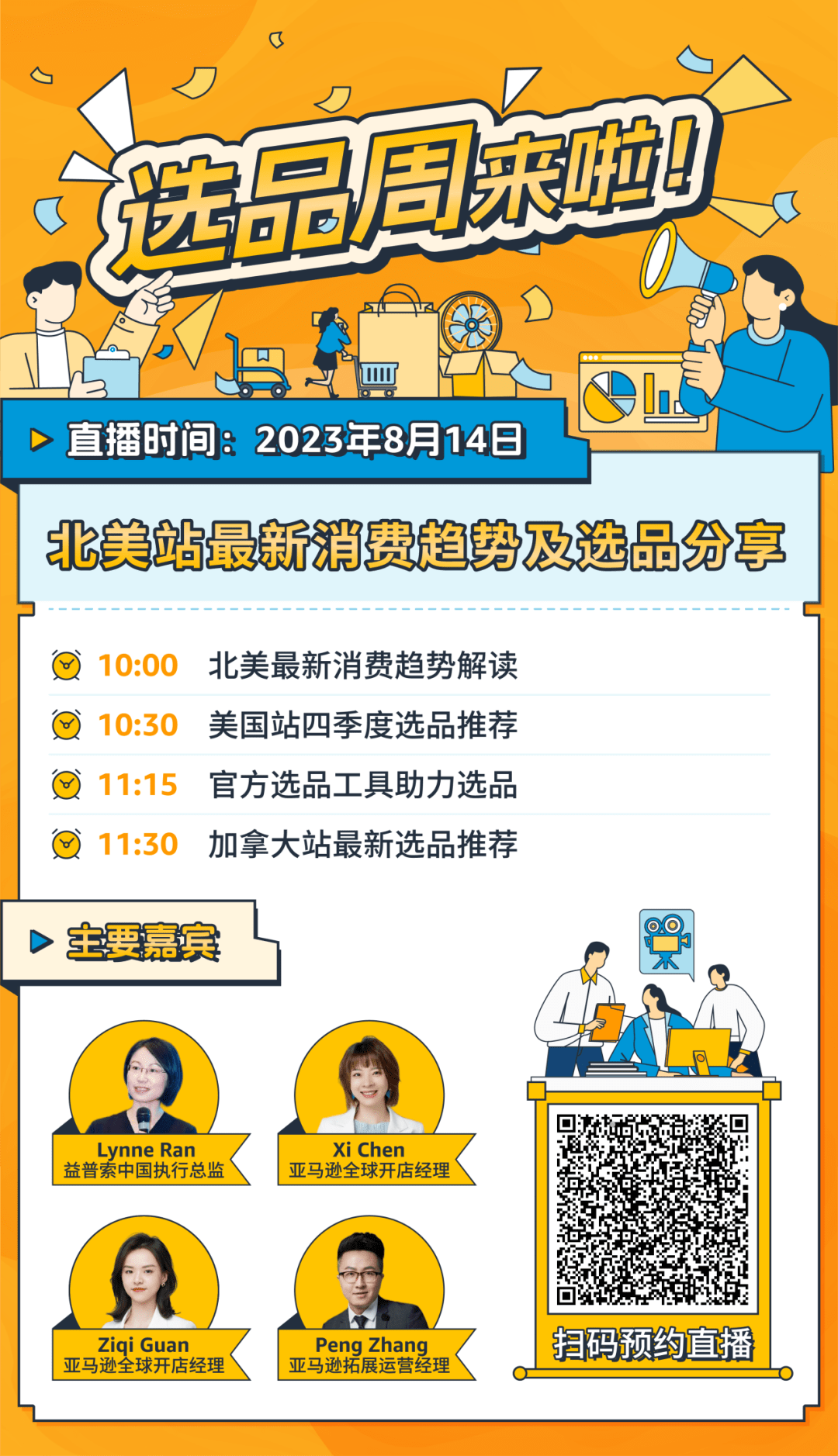 选品没方向?无法及时跟上全球潮流商机?选品小有所成,还想听听更多专业建议?亚马逊实力邀请到众多专家大咖、行业大佬和选品达人助阵本次选品周活动,分享消费趋势洞察、选品方法和潜力品类解析等精彩见解,从专业的角度出发为不同发展阶段的卖家提供有针对性、实用的建议,群英荟萃为您而来!
