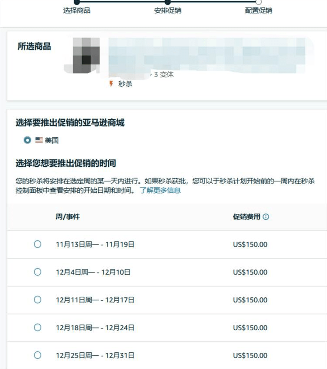 💡 如果卖家点击“创建新促销”后没有出现下图中的Asin推荐,意味着可能暂时没有Deal推荐。